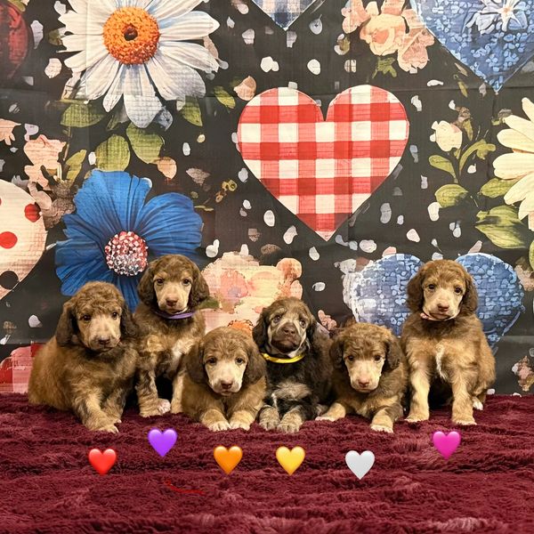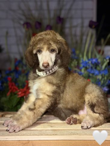 Our dogs are known for their fun-loving personalities and high-quality bloodlines, making them some of the most sought-after puppies around. Our puppies' parents are registered with the AKC, and the litter will also be registered upon leaving our home. Below are pictures and descriptions of CoCo’s Standard Poodle Litter. These puppies will be ready to take home when they turn 8 weeks old on August 18, 2024